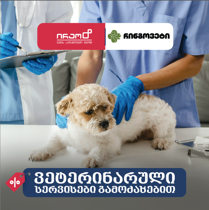 ირაოს შინაური ცხოველების დაზღვევით ისარგებლებთ 20%-მდე ფასდაკლებით რინგოვეტის ვეტერინარულ სერვისებზე – ადგილზე გამოძახებით თბილისსა და მის შემოგარენში. სერვისები მოიცავს: ცოფის & კომპლექსურ ვაქცინაციას, ჰიგიენურ გრუმინგს, ლაბორატორიას, ინფუზიურ თერაპიას, პარაზიტებსა & ჭიებზე დამუშავებას, სწრაფ ტესტებს, სტერილიზაცია / კასტრაციას, ჩიპირება & პასპორტის რეგისტრაციას, ცხოველის ტრანსპორტირებას.