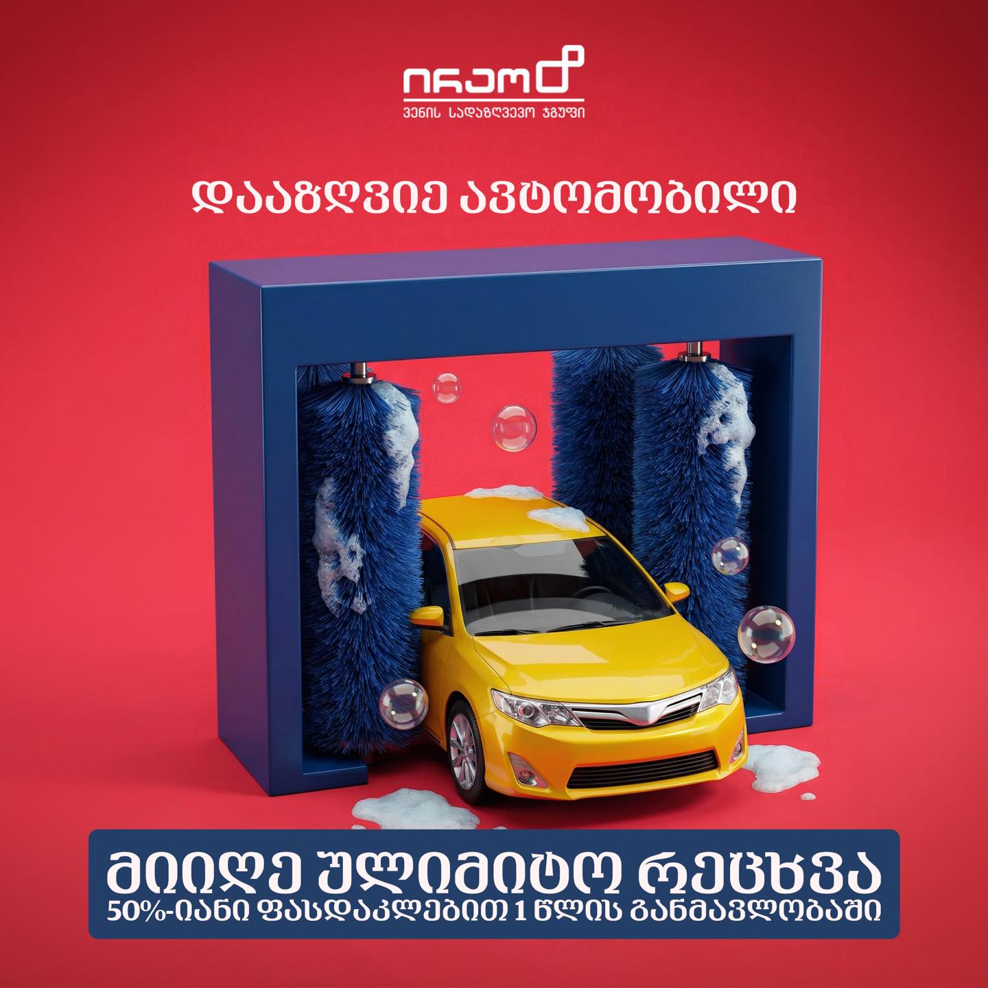 დააზღვიე ავტომობილი ირაოში 25 თებერვლიდან 25 მარტის ჩათვლით და მიიღე საჩუქრად ულიმიტო რეცხვა 1 წლის განმავლობაში 50%-იანი ფასდაკლებით.