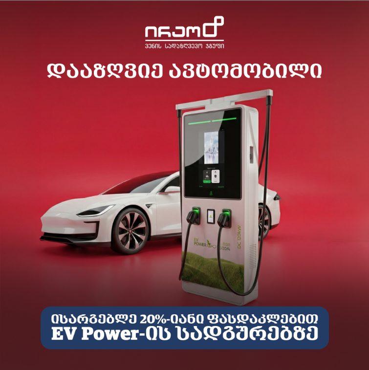 თუკი ირაოს ავტოდაზღვევით სარგლებლობ, Ev Power-ის სადგურებზე ელექტრო ავტომობილის დამუხტვისას 20%-იან ფასდაკლებას მიიღებ.